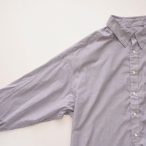 カラーも秋でも使える暗めのネイビー x オフのストライプ。
