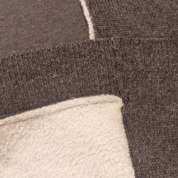 フロントの右半分だけ違う生地がパッチワークされているようなデザイン。